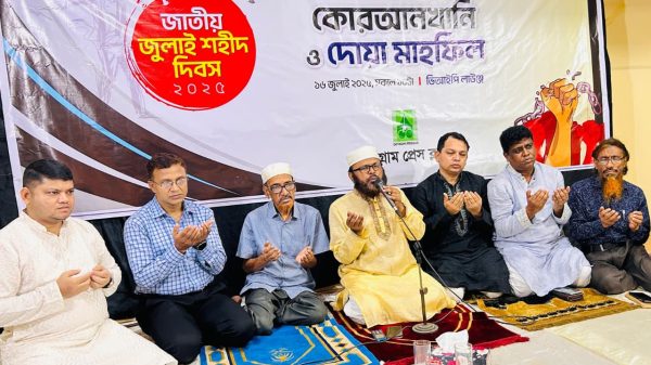 জাতীয় জুলাই শহীদ দিবস পালন উপলক্ষ্যে চট্টগ্রাম প্রেস ক্লাবে চব্বিশের জুলাই বিপ্লবে নিহত সকল শহীদদের স্মরণে কুরআনখানি ও দোয়া মাহফিল অনুষ্ঠিত হয়। মাহফিলে সভাপতিত্ব করেন প্রেস ক্লাব শৃঙ্খলা ও